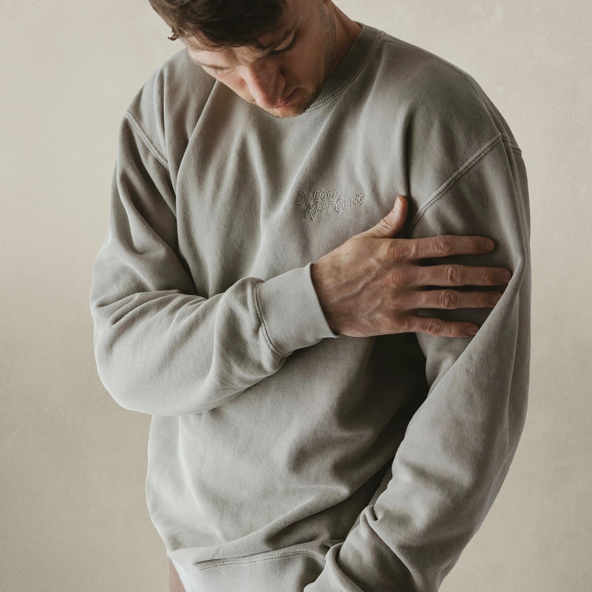 Built on a midweight pigment‑dyed fleece base, our DO GOOD KEEP GOING crew combines heritage craftsmanship with modern construction and lasting comfort. Each piece is pre‑washed, pre‑shrunk, and garment‑dyed for a unique, broken‑in character from day one.